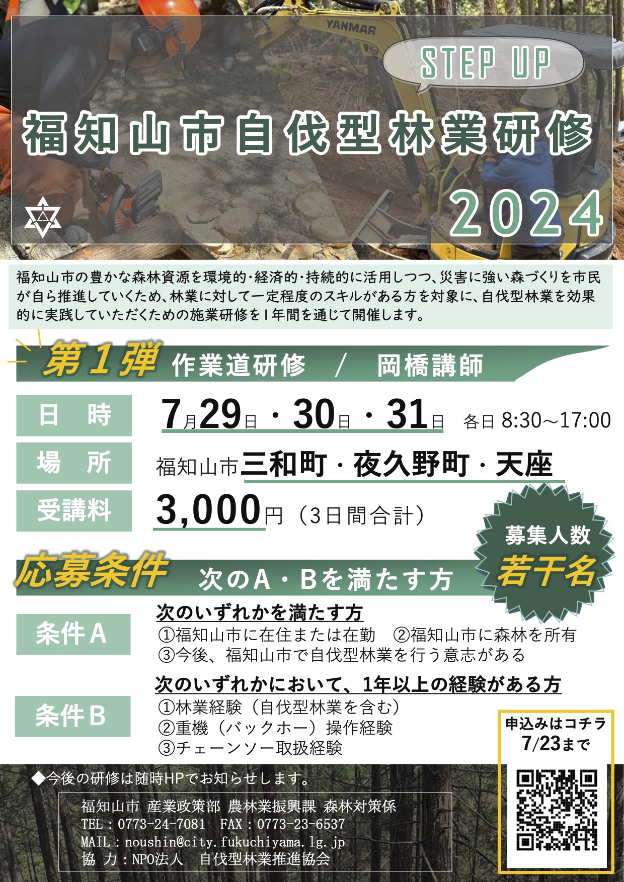 【募集】自伐型林業研修!第一段申込は7/23まで@京都府福知山市