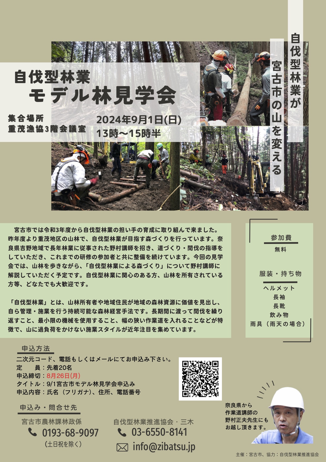 【募集〆切】モデル林見学会と自伐型林業体験研修を開催します@岩手県宮古市