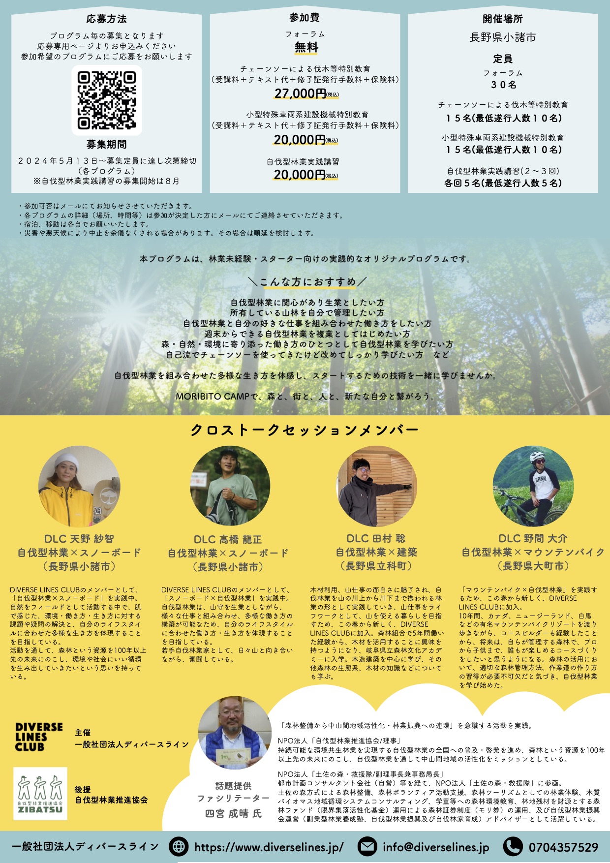 フライヤーのQRコード、または、下記のMORIBITO CAMP2024の専用ページよりご応募ください。