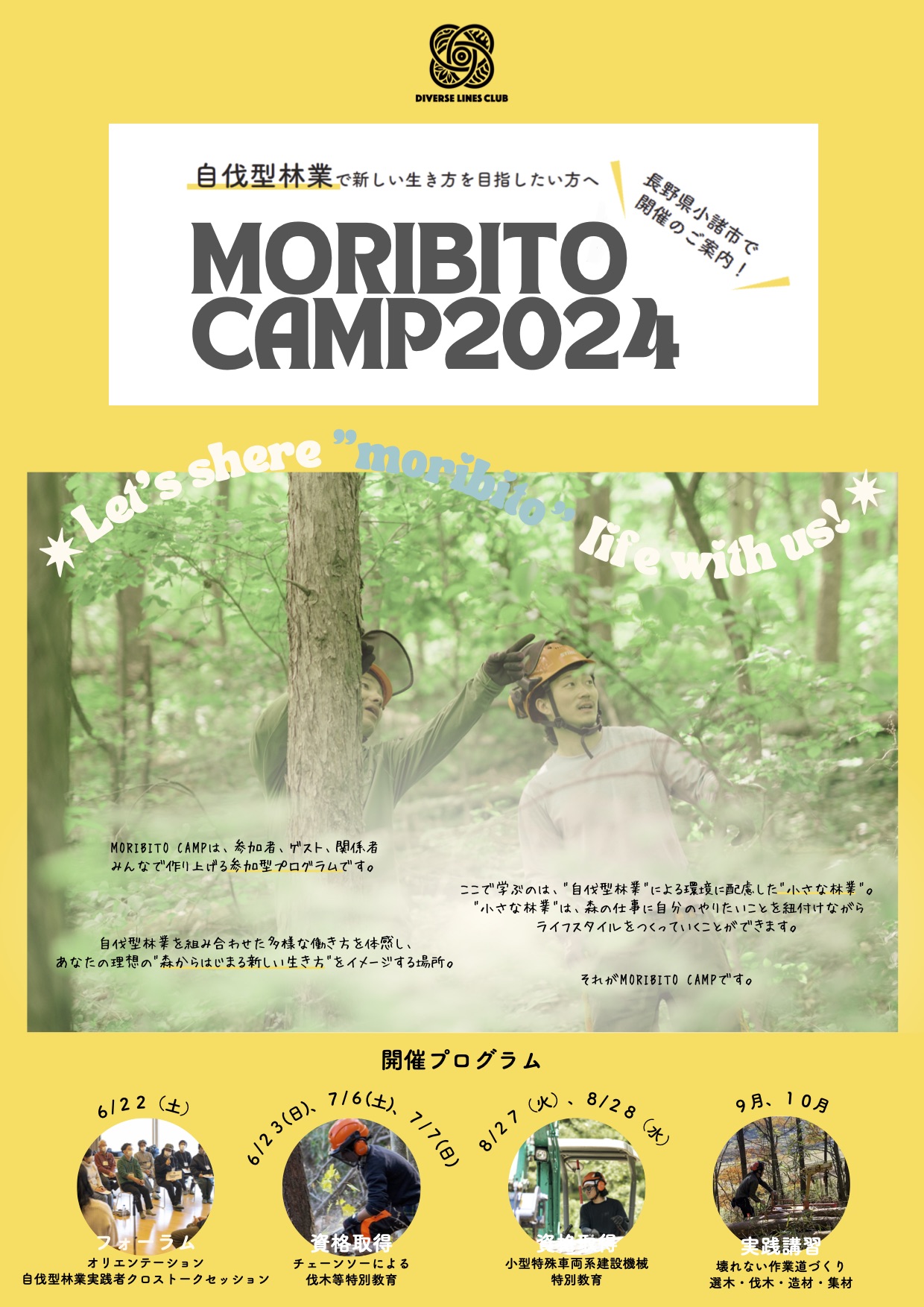 自伐型林業を組み合わせた多様な生き方を体感し、スタートするための技術を一緒に学びませんか。