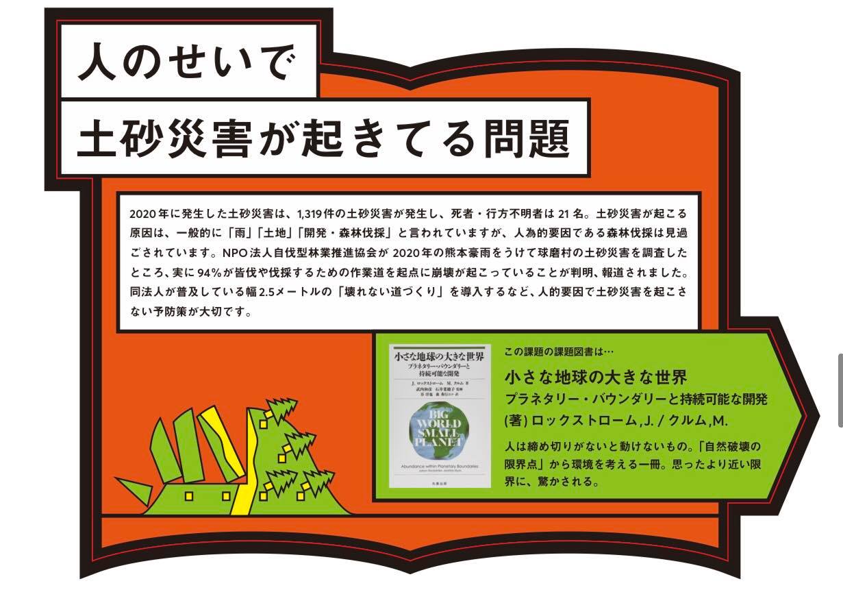 それに先立ち、自伐型林業に賛同してくれる企業「パタゴニア」日本支社が中心となり、4月からイベントを開催します。その一つが、「地球から人に出された課題図書」です。