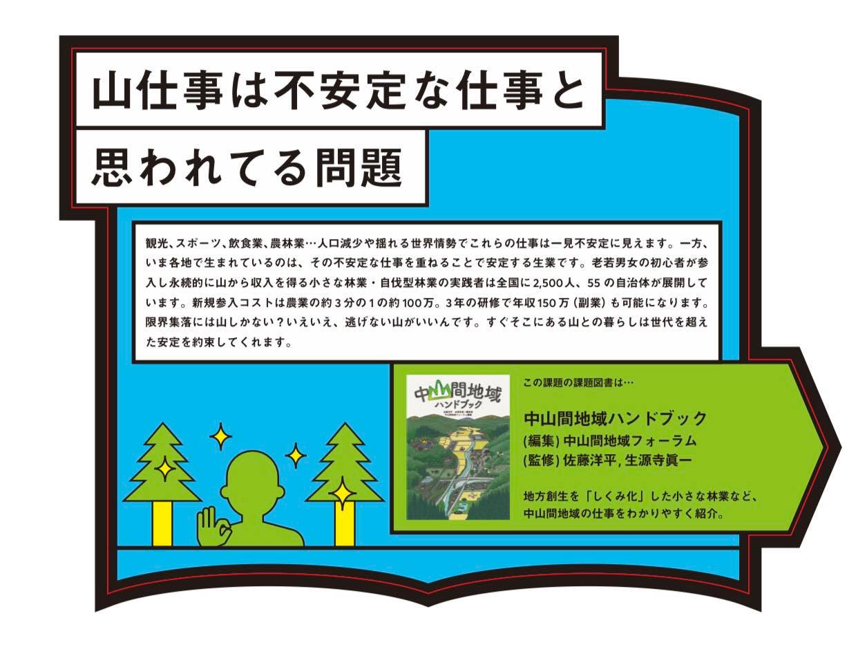 「課題ラボ」が自伐型林業推進協会へのインタビューをもとに選んでくれた図書は、「小さな地球の大きな世界」(丸善出版)と「中山間地域ハンドブック」(中山間地域フォーラム)でした。