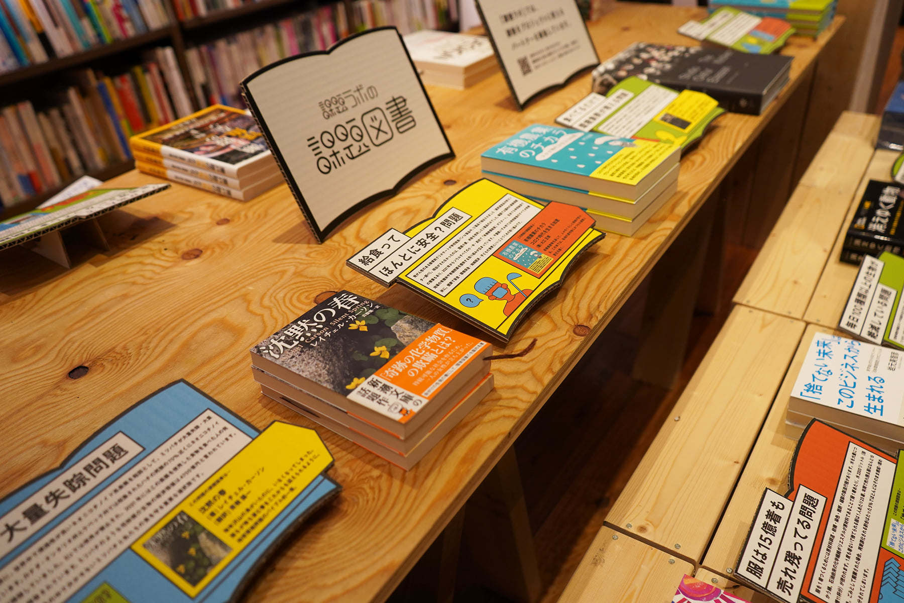 店舗内には、社会全般で起こっている課題を揃え、解決に向かうヒントを与えてくれる図書が紹介されています。