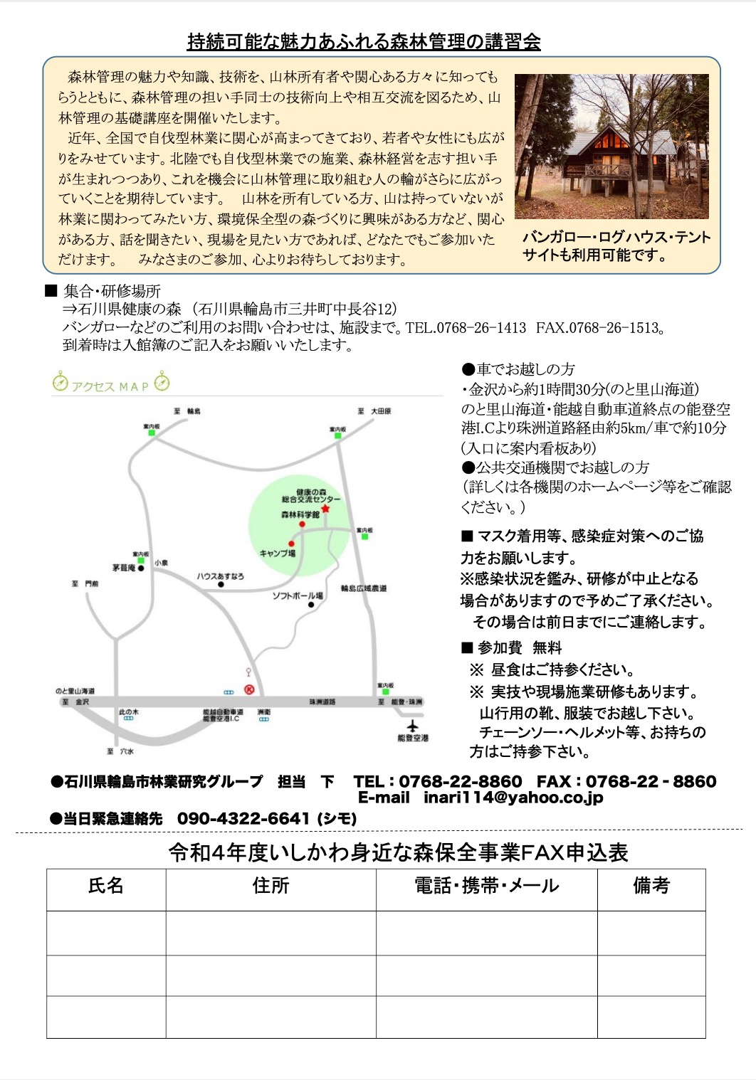 TEL:0768-22-8860(当日緊急連絡先 090-4322-6641) FAX:0768-22-8860