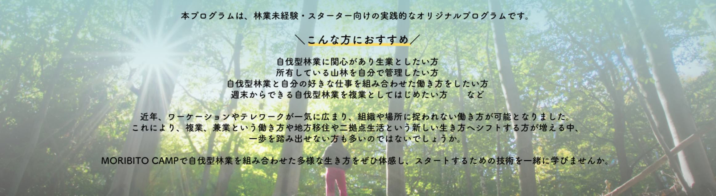 ~森とくらし森ではたらくライフスタイルの創造~を実施しています。