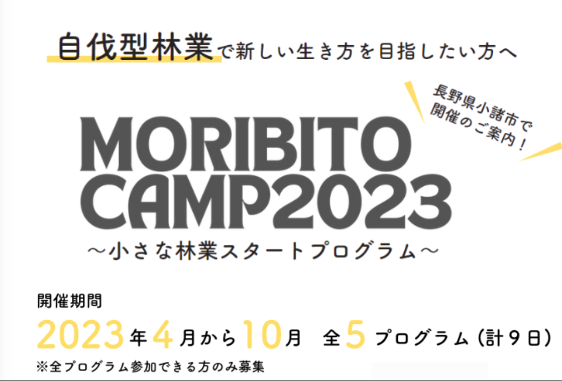【募集終了】MORIBITOCAMP2023 小さな林業スタートプログラム長野県小諸市
